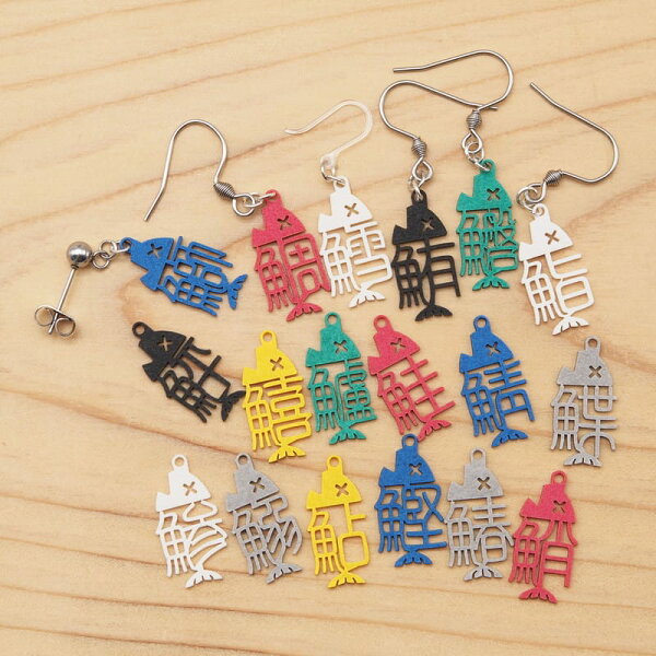 ピアス 魚編のコツ イヤリング ( レディース フープピアス ネジ式 クリップ式 スタッドピアス ウッド シンプル 揺れる 木 大人 可愛い ねこ 磐城高箸 鯵 鮎 鰈 鰹 鮭 鱚 鮹 鮃 鰯 鰆 鯖 鱸 鯛 鮪 鮨 鱈 鰤 魚へんのコツ 魚編 )