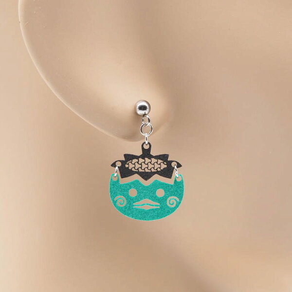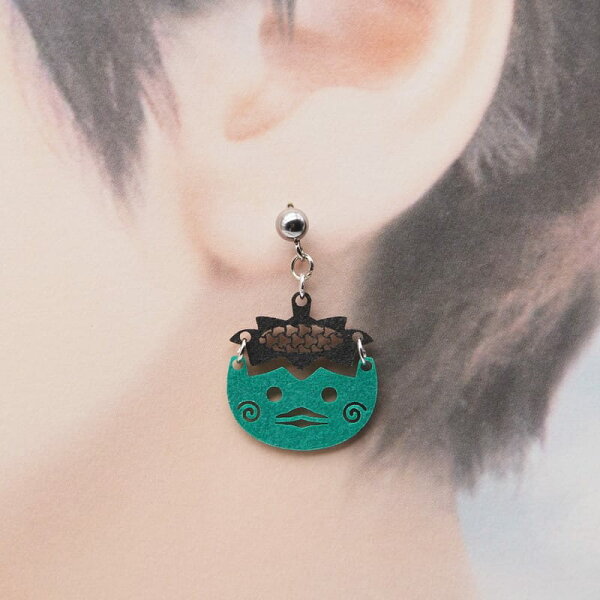 ピアス カッパ ( お皿に組亀甲 ) イヤリング ( レディース フープピアス ネジ式 クリップ式 スタッドピアス ウッド シンプル 揺れる 木 大人 可愛い ねこ 磐城高箸 )