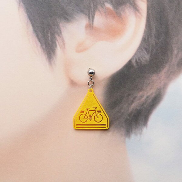 ピアス 標識 ( 自転車横断帯 ) イヤリング ( レディース フープピアス ネジ式 クリップ式 スタッドピアス ウッド シンプル 揺れる 木 大人 可愛い ねこ 磐城高箸 )